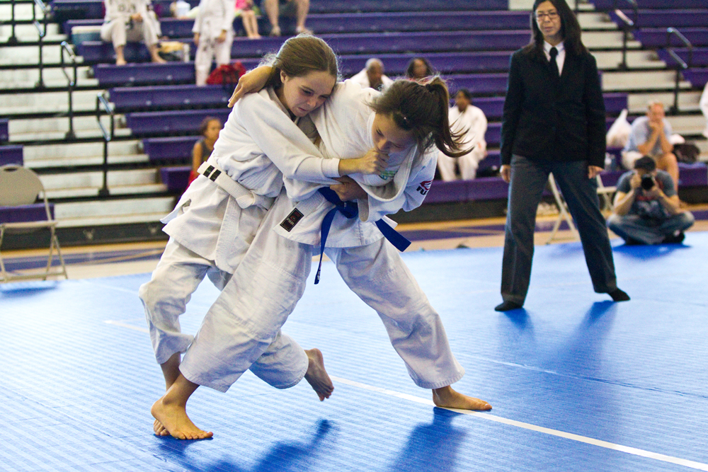 Teammates Anna Cezair Mayers (50/50 & DC Judo) and Cadence Yu (50/50) support each other