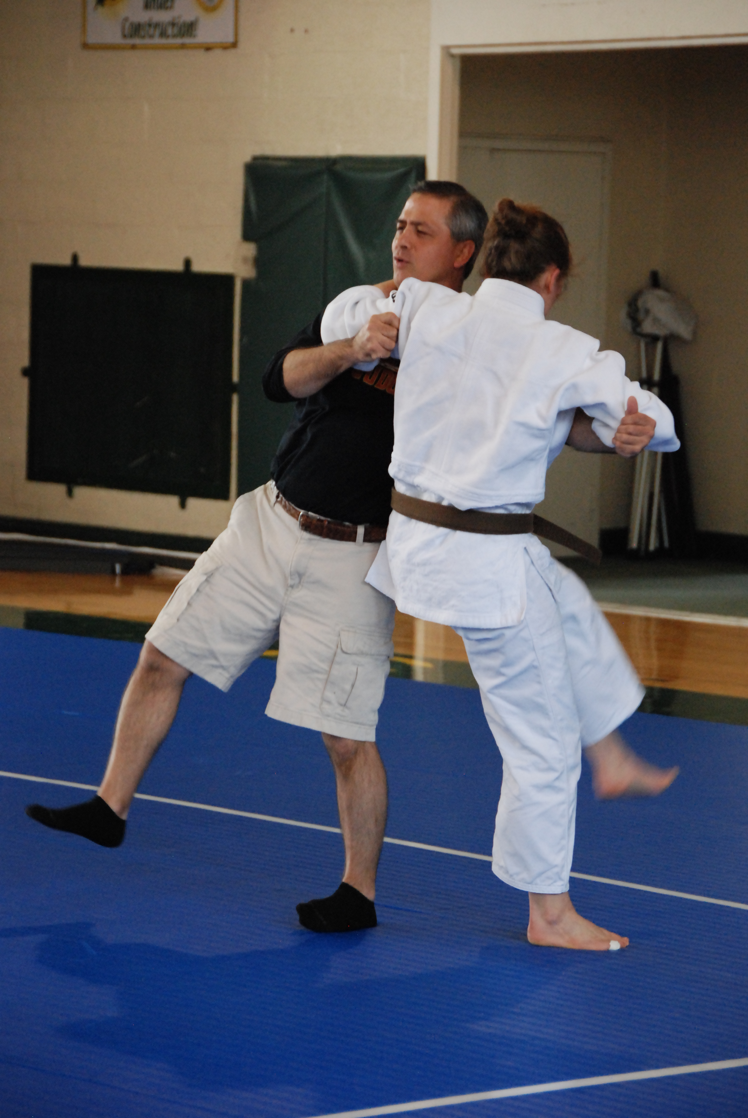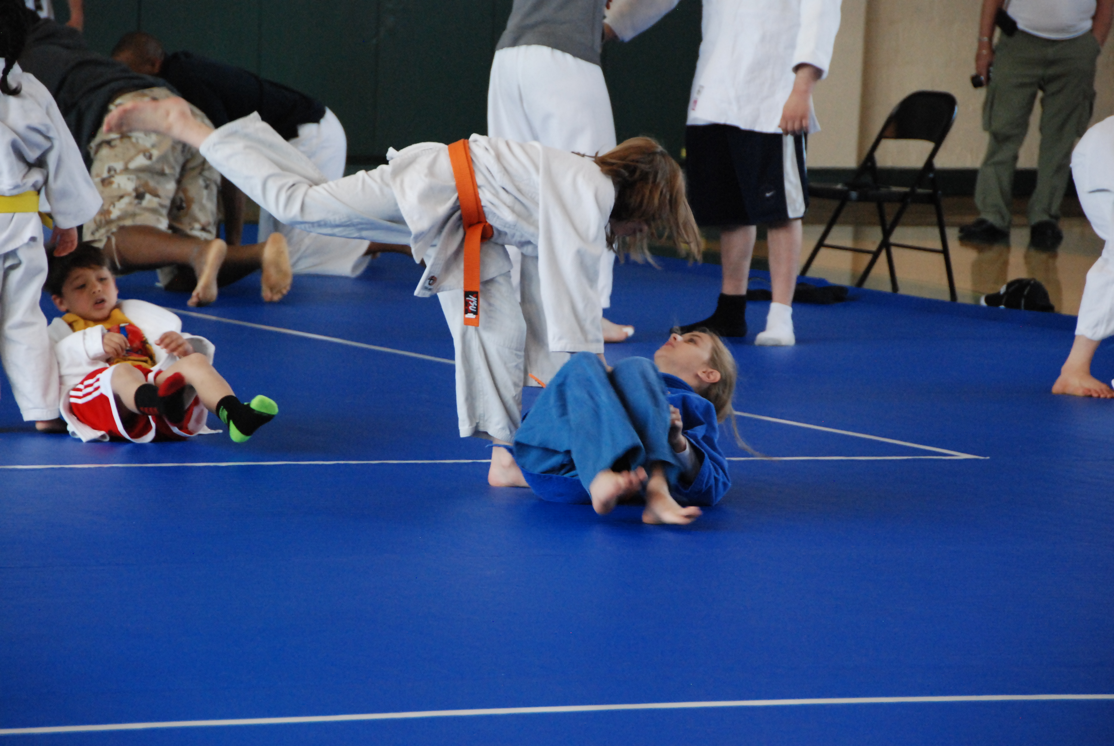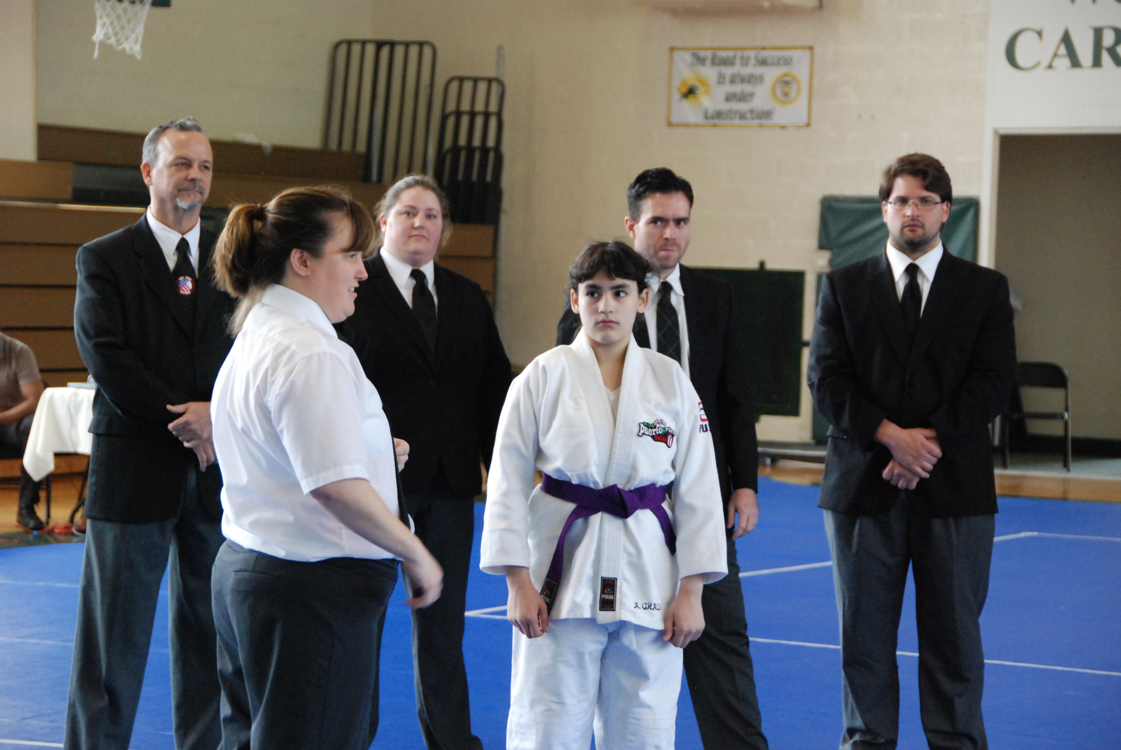 Kata competition preceded the main event – Kata Judges Fran Vall (6th Dan – WJC), Karen Whilden and DIane Jackson (both 5th Dan – Huio) brief kata competitors Margie Kettl, Leah Fisher and Greg Goebel