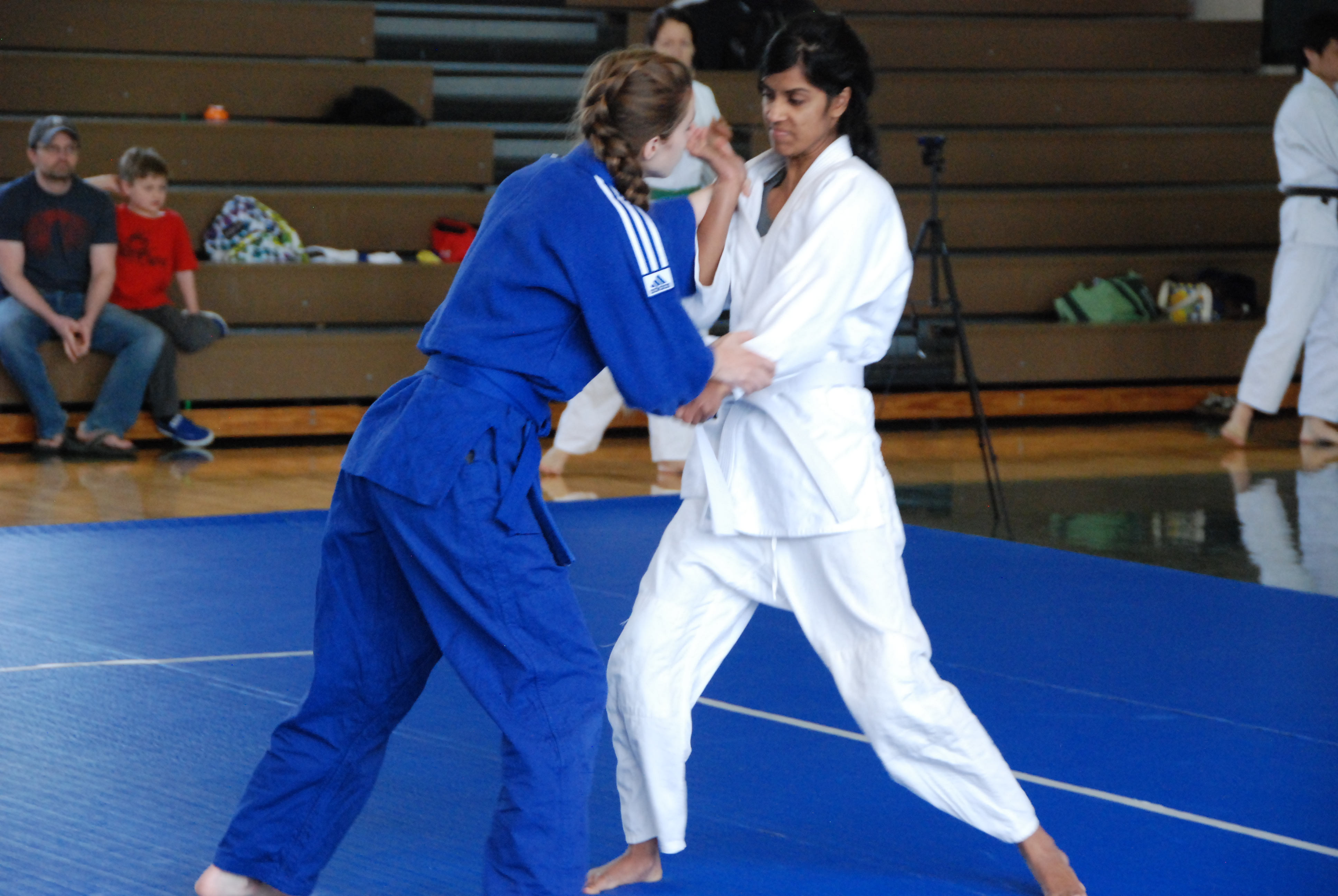 Even when teammates are matched against each other, the competition is good. Sprout Mittal and Janell Jagdhane (DC Judo)