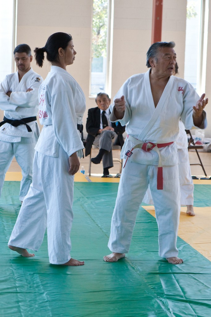 Our youngest participant was Martin Veloso who did a great job of throwing his Mom around. Sensei Jimmy Takemori, 9th dan, was the most senior judoka present. Even in his eighties, he was out on the mat helping students correct and improve their form.